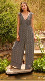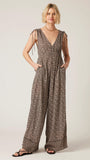 Be ready for anything in this great little V-neck jumpsuit featuring gathered shoulder tie detailing, side seam pockets, and a keyhole at the back neck.