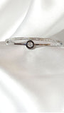 This gleaming split band bangle is illuminated by a single wrapped center solitaire, accented by a single row of pave set brilliant cubic zirconia.