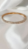 The definition of chic dazzle features a stunning Pavé bangle that's decorated all over in sparkling Cubic Zirconia. This stackable bangle is illuminated by a single row of pave set brilliant stones on the front, top, and bottom
