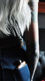 Lady Sneerwell doing the happy dance! Hand-made 6 oz stainless steel flask with etched embellishments atop a classic patina finish. Perfect for sharing your favorite beverage.